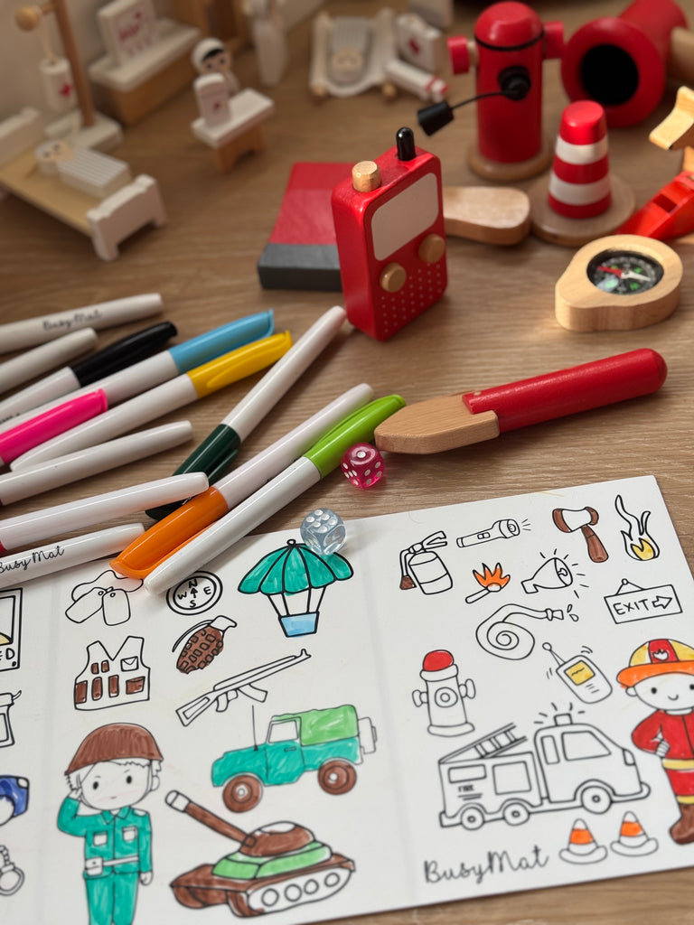 This 16.5cm × 49.7cm reusable colouring and activity mat is printed double‑sided and designed to spark creativity, mindfulness, and meaningful parent‑child conversations.